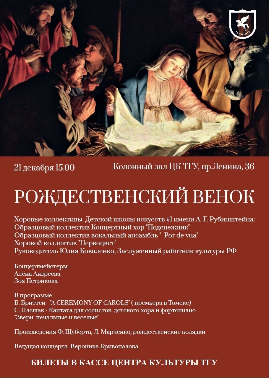 Приглашаем любителей хорового пения на концерт "Рождественский венок", который состоится 21 декабря 2025 года в Колонном зале Центра культуры ТГУ.