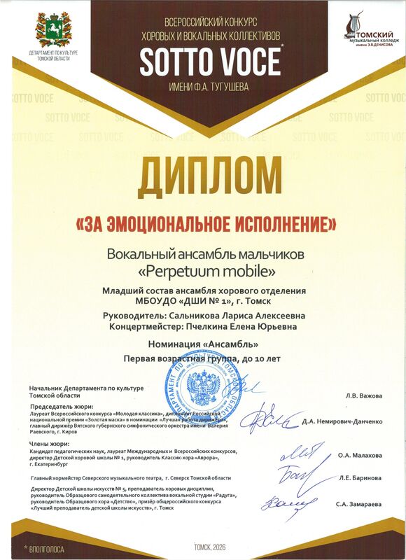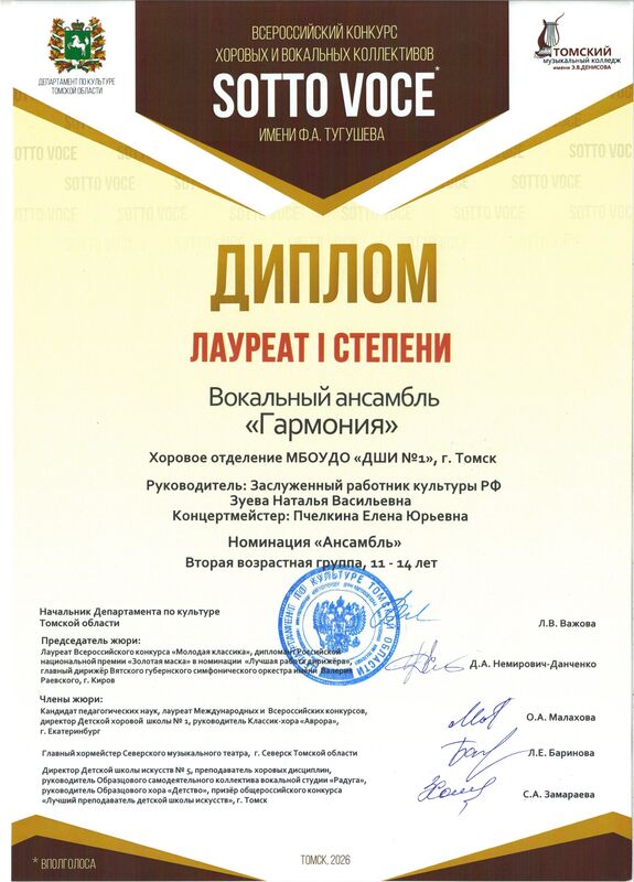 18 апреля в Хрустальном зале состоялся Всероссийский конкурс хоровых и вокальных коллективов Sotto voce им. Ф.А. Тугушева. Поздравляем наших участников с прекрасным выступлением и призовыми местами:
