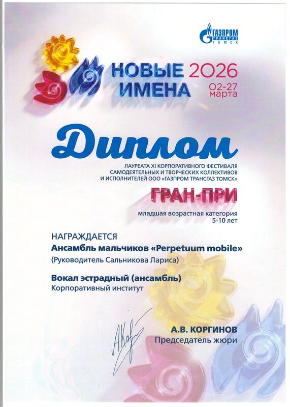 23 апреля 2026 года состоялась церемония награждения конкурсантов, участвовавших в корпоративном фестивале «Новые имена» ООО «Газпром трансгаз Томск».